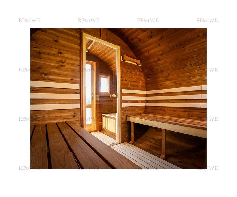 北欧スタイルの木製楕円サウナハウス。丸型よりも広々とした空間を確保し、内部の快適性を高めています。自宅の庭や別荘、キャンプ場などに設置でき、家族や友人とプライベートサウナを楽しめます。